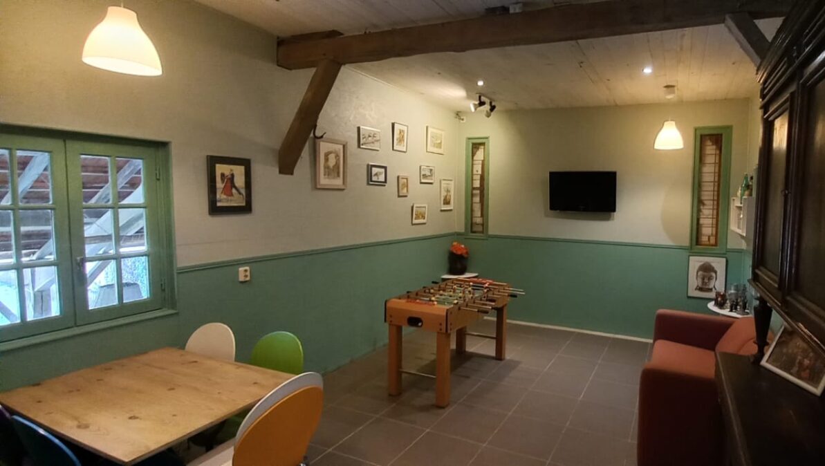 Naast de ingang van de tuin bevindt zich onze “salle des fêtes”. Hier is de nodige informatie over de omgeving te vinden maar ook diverse spelletjes en wat leesvoer. In de zomer kan je hier ook de mooie etappes van de Tour de France kijken of misschien wel de Olympische Spelen of een groot voetbaltoernooi.